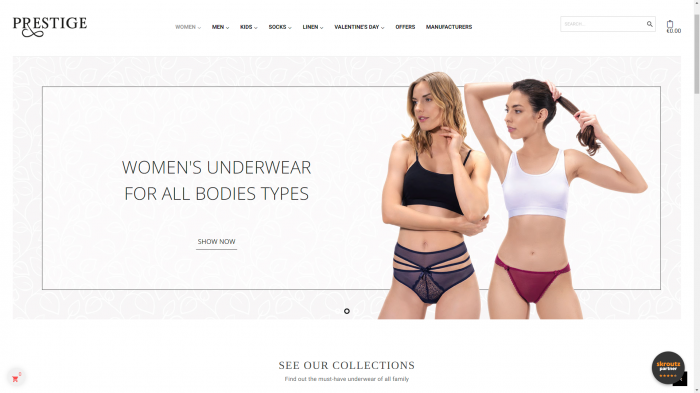 Η Prestige Collection Athens εισαγωγική με πολυετή  παρουσία στο χώρο της ένδυσης ποντάροντας στην καλή ποιότητα και τις προσιτές τιμές διακρίνεται από αξιοπιστία συνέπεια και σεβασμό στον πελάτη, εστιάζοντας στην λεπτομέρεια και αξιολογώντας τις ανάγκες του. Αυτό ακριβώς ανέδειξε σαν αξίες και επικοινωνία η Eshoped δημιουργώντας ένα σύγχρονο λειτουργικό eshop για την Prestige αξιοποιώντας  την πολύχρονη εμπειρία του brand στην χονδρική πώληση και στο κομμάτι  της λιανικής  πώλησης δημιουργώντας ένα καλαίσθητο ηλεκτρονικό κατάστημα  που να φιλοξενεί προϊόντα άμεσα διαθέσιμα στο ευρύ κοινό.